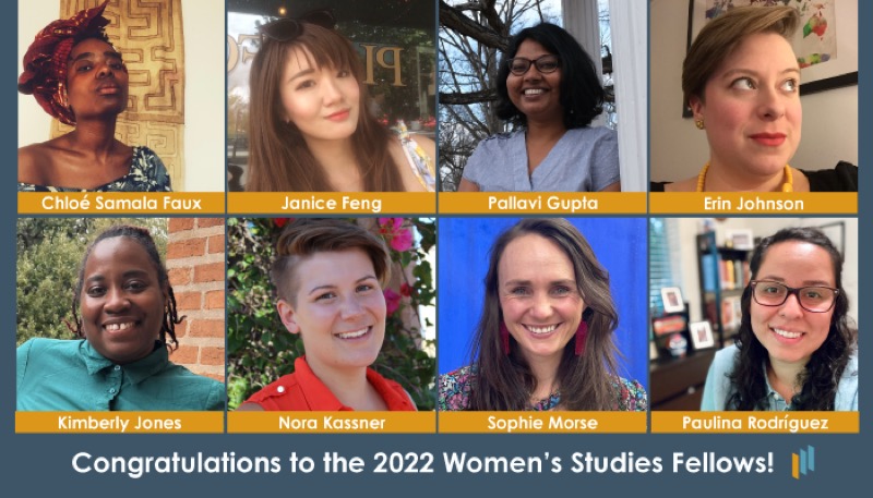 Now joining the ranks of the more than 600 Women’s Studies Fellows are eight outstanding scholars. The Fellows in the 2022 class are Chloé Samala Faux, Janice Feng, Pallavi Gupta, Erin Johnson, Kimberly Jones, Nora Kassner, Sophie Morse, and Paulina Rodríguez (bios below). Fellows are working in such fields as political science, sociology, history, and public policy.