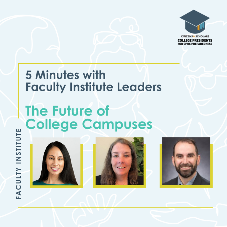 The College Presidents for Civic Preparedness Faculty Institute helps interdisciplinary educators across the country gain the skills and confidence to redesign or create new courses that promote dialogue across difference and become champions of this work on their campuses. What does this work mean for our democracy, the future of higher education, and preparing a rising generation of empowered citizens?