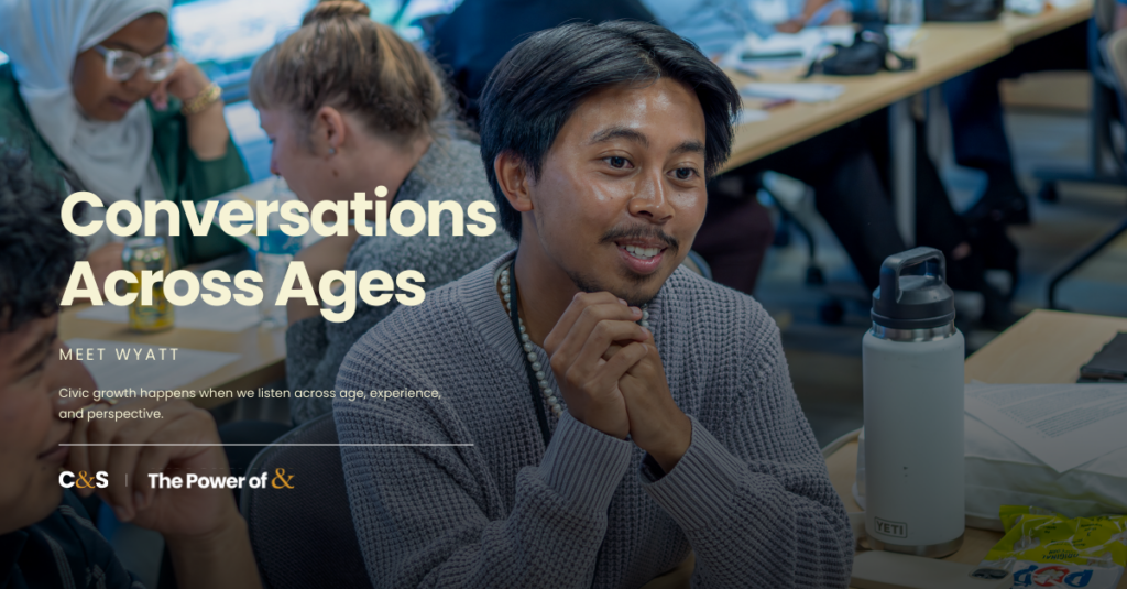 Wyatt Nako is passionate about having productive conversations about the toughest issues facing our country. On Georgetown’s campus, he helps lead an initiative that brings students together across differences—and through C&S’s Our Voices Summit, he expanded that work across generations as well. “Being able to talk to people of different generations has been very eye-opening […]