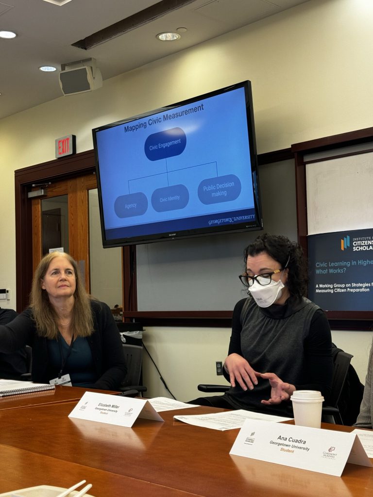 For the past two years, the Institute for Citizens & Scholars has spearheaded efforts to measure civic learning in higher education as part of the College Presidents for Civic Preparedness initiative. The Working Group on Strategies for Measuring Citizen Preparation launched in May 2023 with a diverse group of 13 institutions and has continued with monthly virtual meetings. Leveraging the measurement framework from Mapping Civic Measurement, participants designed and launched studies focused on elements from the Civic Readiness Map (critical thinking, civic identity, public decision-making) and the Civic Opportunities Map (critical thinking, inclusion and empathy, and agency).
