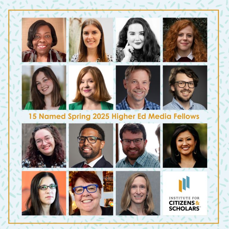 The Institute for Citizens & Scholars is pleased to announce its eighth class of journalists named to the Higher Education Media Fellowship, supported by ECMC Foundation. The 15 outstanding journalists represent a variety of news outlets, regions, and media.
